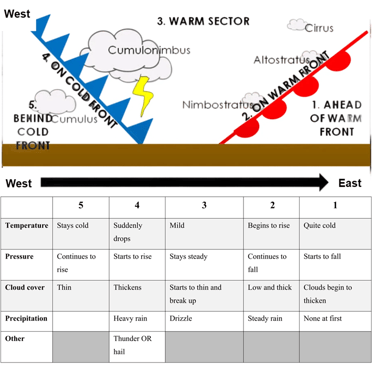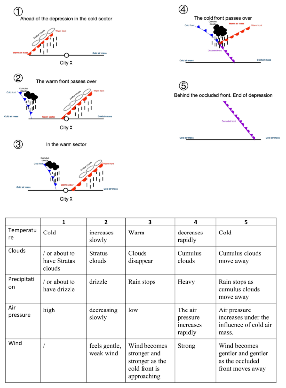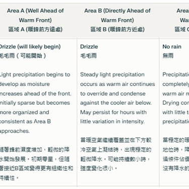 Weather conditions related to warm front